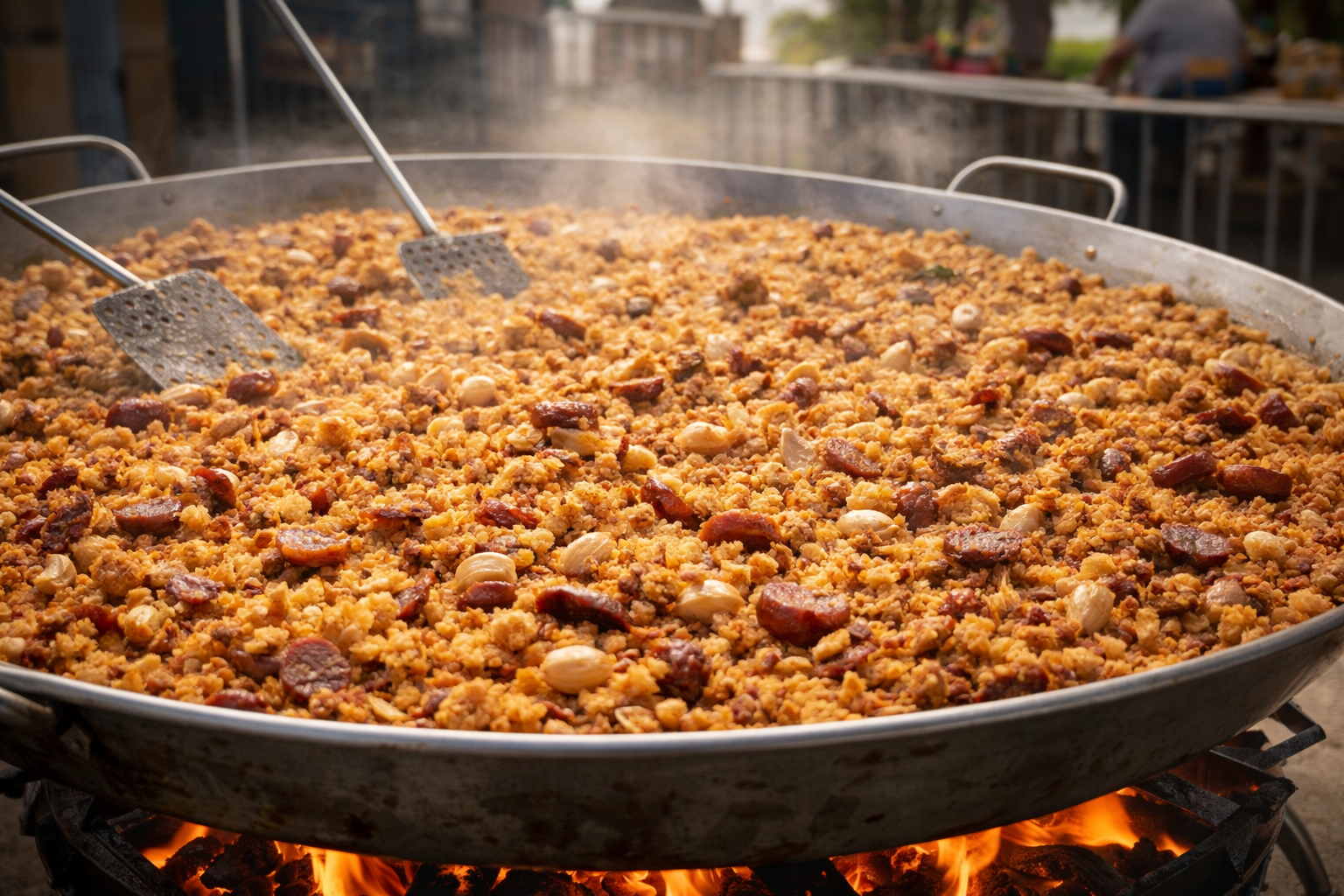 En Super Paellas de A. Sánchez llevamos décadas dedicándonos a la cocina para eventos, celebraciones y grandes encuentros gastronómicos. Nuestra especialidad son las super paellas y los cocinados gigantes, pero nuestra propuesta va mucho más allá: migas, carnes en salsa, guisos tradicionales y una gran variedad de platos preparados para servir a cientos o miles de personas.